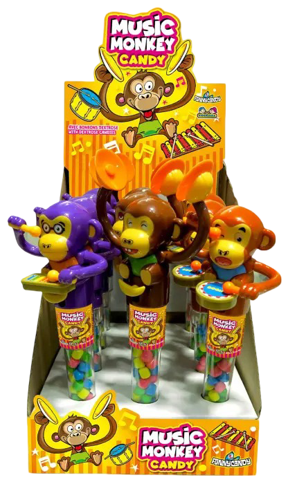 Godismatare i form av musikspelande apa. Varje kolli innehåller 12 enheter.